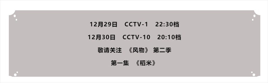 2023年12月29日起,紀錄片《風物》(第二季)的七期節(jié)目將在央視綜合頻道CCTV-1 晚間 22:30檔,陸續(xù)播出。第二季節(jié)目秉持著《風物》第一季的創(chuàng)作理念,用獨具特色的精美鏡頭、貫穿古今的風物故事、地跨南北的格局視角,展現(xiàn)了中國大地獨具特色的風物特產(chǎn)。節(jié)目以習近平文化思想為統(tǒng)領,通過挖掘七種中華大地上最具代表性的時令特產(chǎn),展現(xiàn)其深層的文化邏輯、歷史根脈和生活智慧,以獨特的文化擔當、強烈的文化自信,生動描摹了一幅幅獨特鮮活的“中國風物版圖”,打造了一部部影像版“國家風物畫卷”,揭示了中華優(yōu)秀傳統(tǒng)文化中天人合一、萬物和諧共生的文化理念和價值追求。
