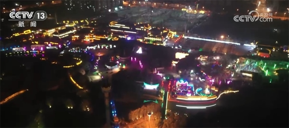 在河南漯河,近兩萬盞造型各異的燈飾把城市裝扮得格外喜慶。夜幕降臨,道路兩側(cè)燈光璀璨,古風(fēng)建筑更顯得美輪美奐。此外,當(dāng)?shù)剡€增加了水上國風(fēng)節(jié)目表演,迎接新年到來。