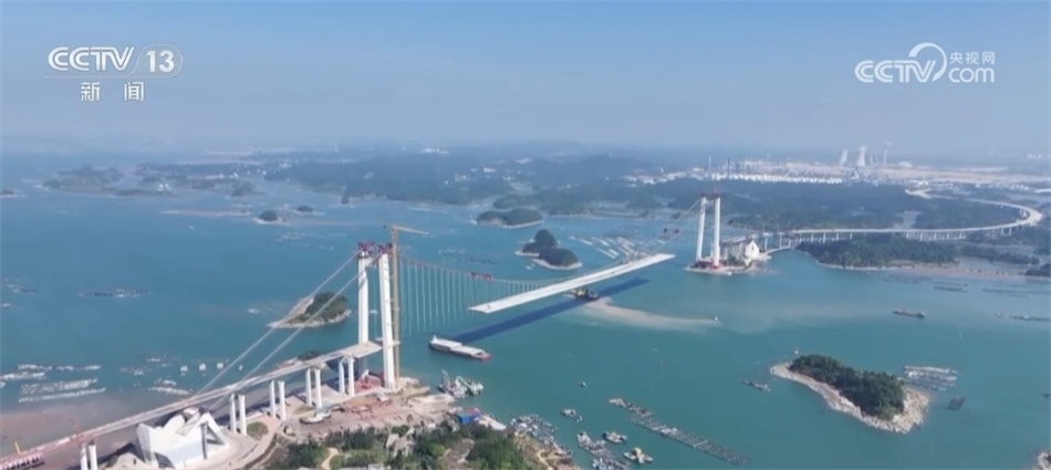 ??????廣西欽州:龍門(mén)大橋正在施工 狀似“巨龍橫臥”