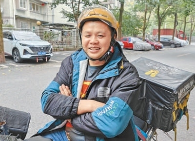 做外賣騎手的張俊。本報記者 姜 峰攝