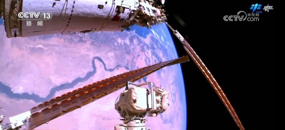 2023年10月26日19時(shí)34分,神舟十六號(hào)航天員乘組打開(kāi)“家門(mén)”,歡迎神舟十七號(hào)航天員湯洪波、唐勝杰、江新林入駐“天宮”。兩個(gè)乘組在軌共同生活了約5天后,神舟十六號(hào)航天員在返回地球途中,還完成了此次飛行任務(wù)最后一項(xiàng)工作,首次拍攝了以地球?yàn)楸尘暗闹袊?guó)空間站全景高清照片。