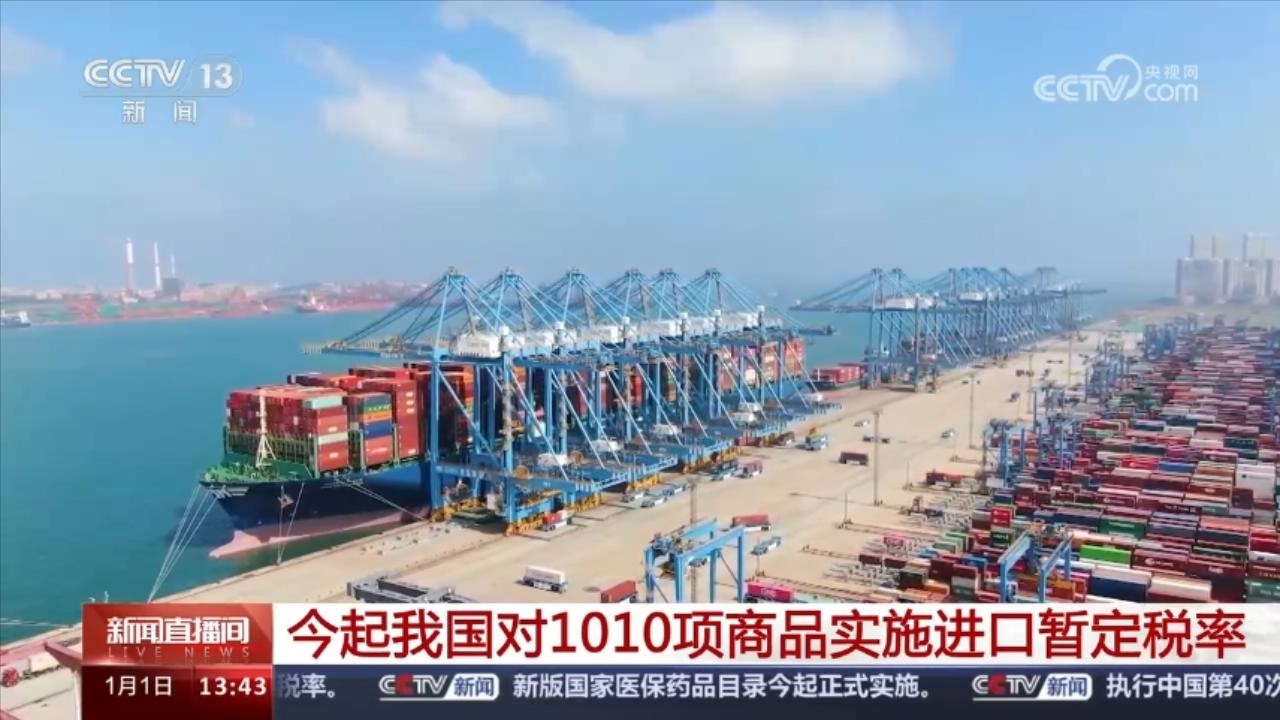 央視網(wǎng)消息:為增強(qiáng)國內(nèi)國際兩個市場、兩種資源聯(lián)動效應(yīng),維護(hù)我國產(chǎn)業(yè)鏈、供應(yīng)鏈穩(wěn)定順暢,1月1日起,我國對1010項(xiàng)商品實(shí)施低于最惠國稅率的進(jìn)口暫定稅率。