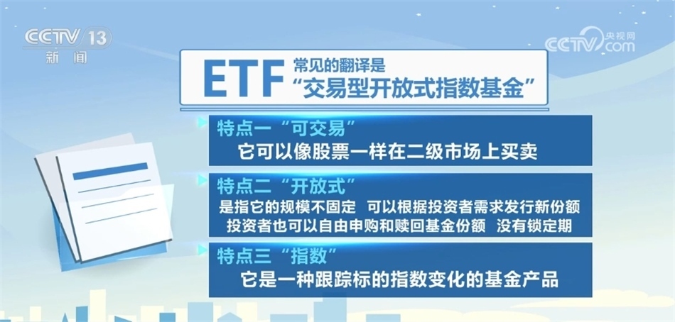 央視網(wǎng)消息:在2023年的資本市場上,有一類產(chǎn)品受到了投資者關注,從產(chǎn)品的種類到規(guī)模都出現(xiàn)明顯增長,這就是ETF,也就是我們常說的“交易型開放式指數(shù)基金”。那么什么是指數(shù)基金,ETF又具體包含哪些內容呢?我們來了解一下。?