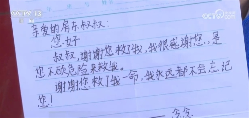 事后,被救小女孩還主動(dòng)寫了一封感謝信并錄了視頻向蔡國榮表示感謝。