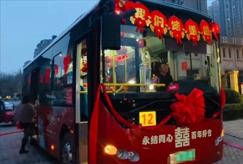 ·河南鄭州一對(duì)90后夫妻用公交車當(dāng)婚車:比傳統(tǒng)婚車更熱鬧有趣,租豪車沒有任何意義。