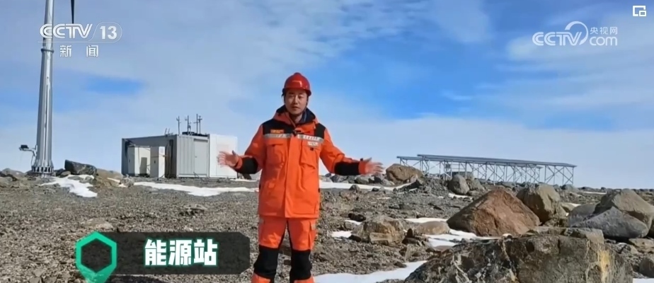 總臺央視記者 李寧:主站的下方就是正在建設(shè)中的停機坪。由于南極獨特的地理環(huán)境,對于直升機的需求非常大,無論是運貨還是運人都離不開直升機。因此,停機坪也是每個科考站必備的基礎(chǔ)設(shè)施。這里是距離新站大概有1公里的一個山頭,也是未來能源站所在的區(qū)域。目前,這個地方正在進行新能源的測試,這里面有光伏發(fā)電、風力發(fā)電兩種方式,建成之后新站60%的能源供應都將由新能源來完成。