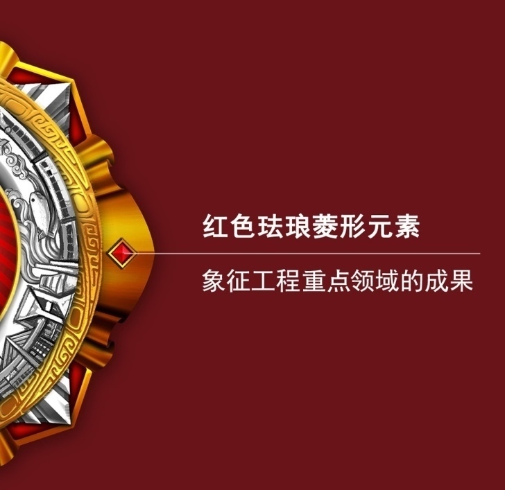 與其它國(guó)家勛章相比,“國(guó)家卓越工程師”獎(jiǎng)?wù)伦畲蟮牟煌褪菦]有用到寶石,改用琺瑯工藝使得金飾有鮮艷的色彩,例如徽章的底色和五角星的填充色,色彩絢麗而不夸張,平整但有較高的飽和度和光澤。
