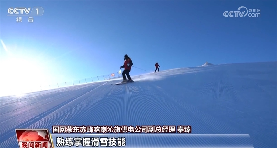 國網(wǎng)蒙東赤峰喀喇沁旗供電公司副總經(jīng)理 秦臻:步行巡視一個來回需要3個小時,通過組建電力滑雪保障團隊,熟練掌握滑雪技能,我們用一個半小時就可以巡視一個來回。