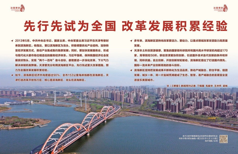 以打造新時代高質(zhì)量發(fā)展示范區(qū)為目標(biāo),濱海新區(qū)堅持活力在“試”、特質(zhì)在“新”、目標(biāo)在“高”,以實體經(jīng)濟(jì)、港口資源、產(chǎn)業(yè)創(chuàng)新等優(yōu)勢為支撐,以科技創(chuàng)新、體制改革、擴(kuò)大開放等為引領(lǐng),努力在全市高質(zhì)量發(fā)展中做先鋒、當(dāng)主力,成為北方區(qū)域經(jīng)濟(jì)發(fā)展的輻射引擎、體制機(jī)制創(chuàng)新的重要源頭。