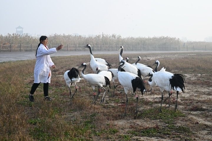 冬日清晨,遼闊的黃海濕地被成群丹頂鶴的高亢鳴叫喚醒。這里是“東亞-澳大利西亞”遷飛通道上數(shù)百萬候鳥的“加油站”,每年有約400至600只野生丹頂鶴在此越冬。不久前美國加州州長紐森到訪時,一只陪同“參觀”的丹頂鶴意外走紅,以優(yōu)雅姿態(tài)為美麗江蘇代言。