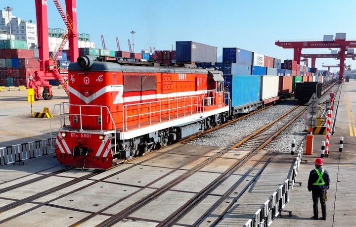 水路大進大出,鐵路風馳電掣。元旦當天,連云港新年開行的首趟中歐班列載著汽車配件、家用電器等,從中哈物流合作基地出發(fā),駛往中亞國家;同日,南通海安物流基地內,一列滿載貨物的班列鳴笛啟程開往越南河內。有去有回,不久之后,“鋼鐵駝隊”會把來自歐洲、中亞和東南亞的機械、木材等運回中國,開啟新一輪國際循環(huán)。