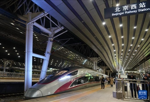 1月26日,G6701次列車(chē)駛離北京西站。新華社記者 張晨霖 攝