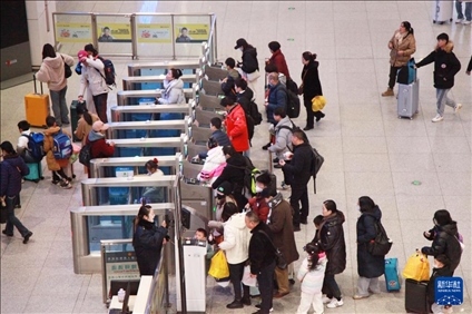 1月26日,旅客在徐州東站排隊(duì)檢票乘車(chē)。新華社發(fā)(劉建華攝)