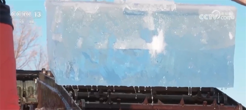 看冰燈、玩超長冰滑梯、和萬人在冰天雪地?zé)嵛?,眼下的哈爾濱冰雪大世界堪稱歡樂的海洋。此時(shí),同樣熱鬧的還有松花江的冰面上,機(jī)器轟鳴、冰花飛濺,一塊塊晶瑩剔透的冰被拖出水面,裝車送往存冰場(chǎng)。