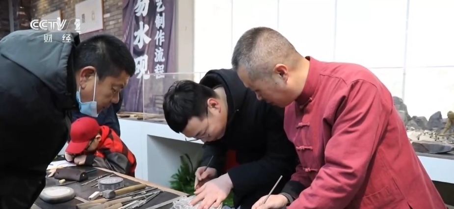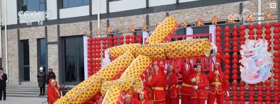 在河北保定,當?shù)嘏e辦了“非遺過大年”活動。有300余年歷史的非遺表演——“擺字龍燈”首先亮相。表演者舞動著金色的長龍,擺出“龍年大吉”等字樣。除了表演,還有非遺技藝“易水硯制作”“結(jié)繩技藝”等也吸引了群眾和游客們沉浸式體驗。