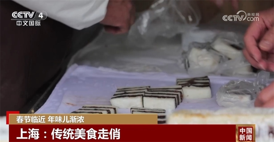 在上海,許多古鎮(zhèn)張燈結(jié)彩迎接春節(jié),老字號食品店也排起了長龍。在一家糕團(tuán)店前,購買傳統(tǒng)糕點(diǎn)的顧客絡(luò)繹不絕,崇明糕、定勝糕、紅糖糕等各具特色的傳統(tǒng)糕點(diǎn),不僅香甜美味,還能為新年討得一個好彩頭。