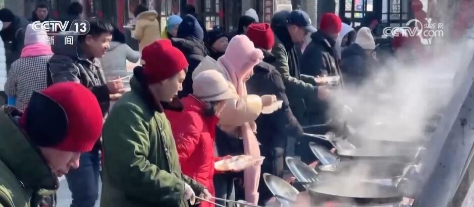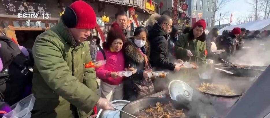 總臺(tái)記者 王亞平:我現(xiàn)在就是在長春市蓮花島年貨大集。這會(huì)兒大集上香氣撲鼻,每口鐵鍋前都圍滿了品嘗美味的人們。室外冒著寒氣,食客嘴里吐著哈氣,用東北話講,吃得“嘎嘎香”。