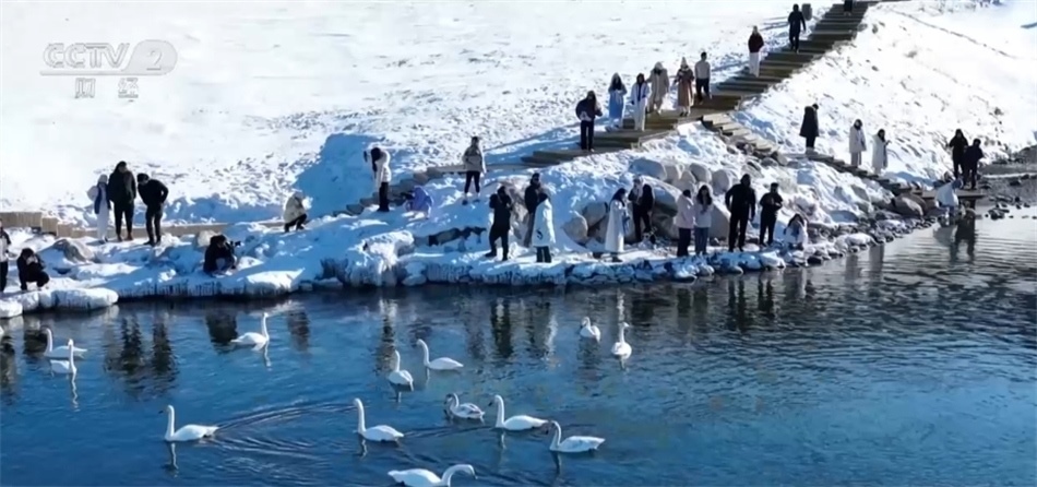 總臺記者 李楠:這里就是天山環(huán)抱中的新疆賽里木湖景區(qū),周圍的群山和湖面仍舊被冰雪覆蓋。在我身后正在舉辦冰雪“那達慕”迎春活動,當(dāng)?shù)氐霓r(nóng)牧民群眾和來自全國各地的游客正參與其中。