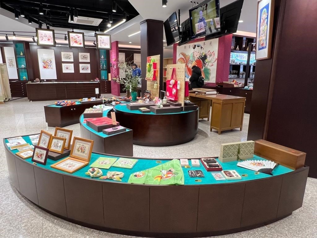 天津古文化街上的楊柳青畫店內(nèi)正在售賣豐富的文創(chuàng)產(chǎn)品。新華社記者白佳麗 攝