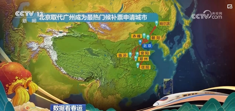申請候補票的熱門路線2月7日出現(xiàn)新變化,北京取代廣州成為候補票申請最熱門的出發(fā)城市。從北京到朝陽、赤峰、哈爾濱、鄭州、臨汾、信陽、安陽這7個城市的候補票最為緊張。而從上海出發(fā)到鄭州、武漢、周口、商丘等中部城市的候補票也比較緊張。