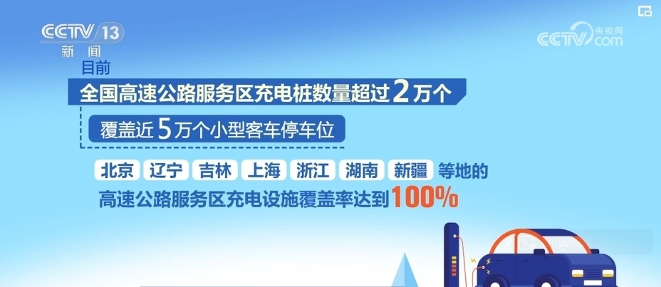 交通運(yùn)輸部數(shù)據(jù)顯示,目前,全國(guó)高速公路服務(wù)區(qū)充電樁數(shù)量超過(guò)2萬(wàn)個(gè),覆蓋近5萬(wàn)個(gè)小型客車(chē)停車(chē)位。北京、遼寧、吉林、上海、浙江、湖南、新疆等地的高速公路服務(wù)區(qū)充電設(shè)施覆蓋率達(dá)到100%。