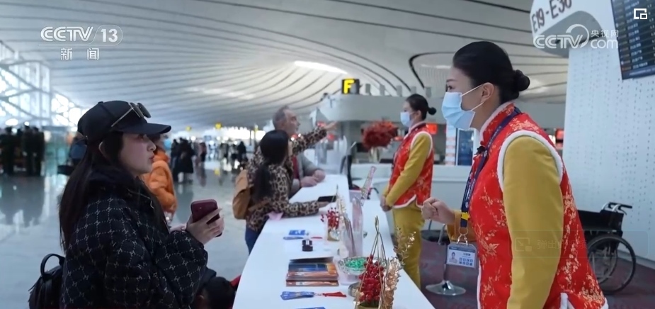 2月9日,超過13萬名旅客通過北京大興機場乘飛機旅行或回家過年。為了給乘客的旅途增一絲暖意,添一分平安,大興機場年輕的服務大使們,在崗位上默默奉獻著。