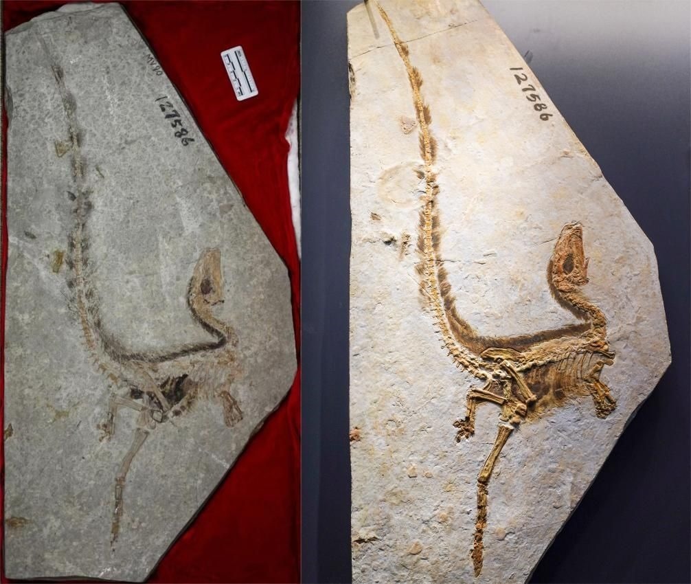 ·這只“明星恐龍”生活在距今1.25億年前,化石于1995年在我國遼寧被發(fā)現。中華龍鳥最令人震驚的是化石上保存完好的“羽毛”。這是人類第一次發(fā)現明確的帶羽毛的恐龍化石,最早的研究者們認為這可能是一種長相酷似恐龍的“鳥”,因此給它起名“原始中華龍鳥”。