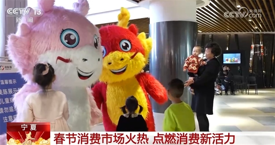 春節(jié)期間,寧夏也推出了一系列迎新春促消費(fèi)活動(dòng)。在寧夏銀川市金鳳區(qū)的一家大型商業(yè)綜合體里,各種以龍為元素的裝扮讓整個(gè)商場里年味十足。