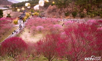湖北十堰秦巴植物園里萬(wàn)畝梅花盛開,漫山遍野如云似霞。