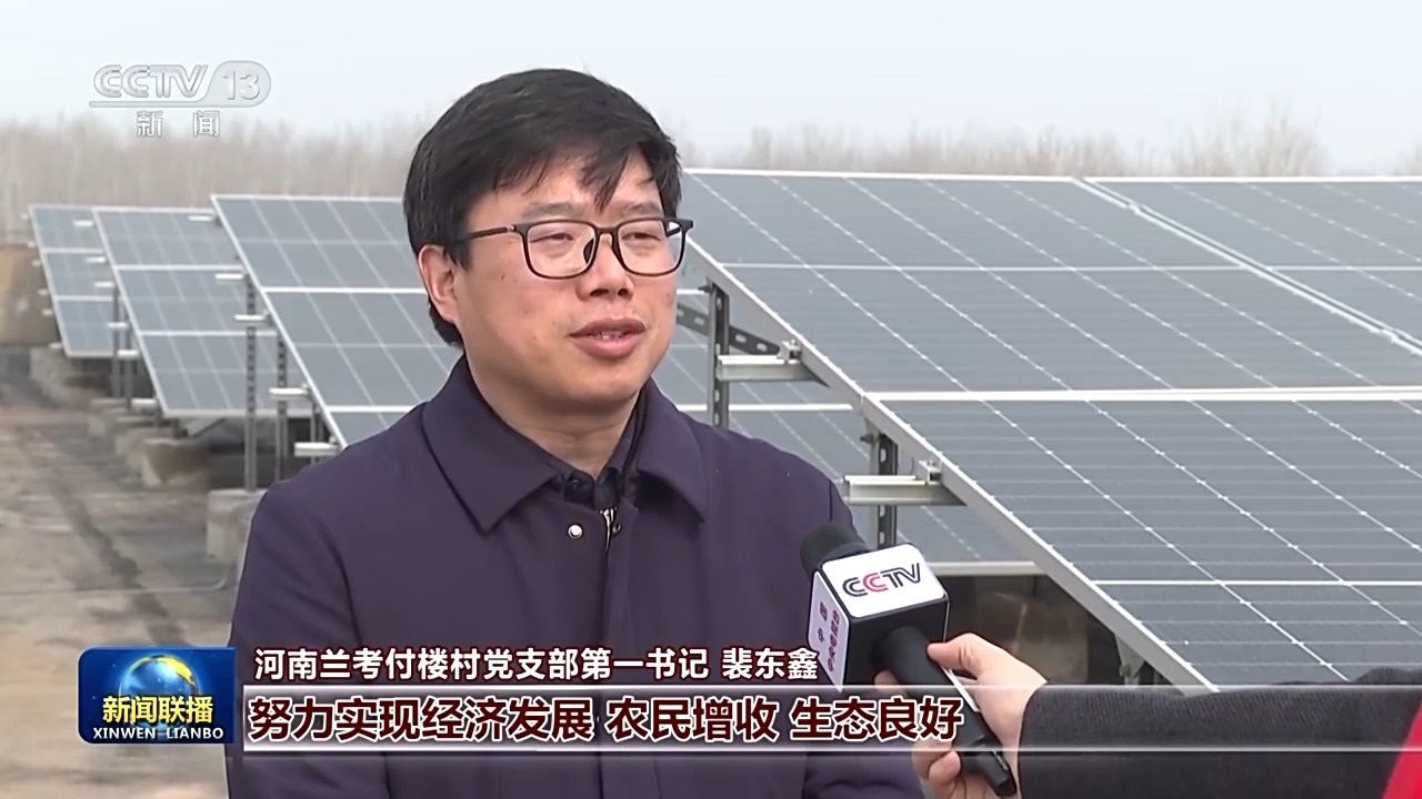 河南蘭考付樓村黨支部第一書記 裴東鑫:習(xí)近平總書記要我們?cè)诰G色發(fā)展中,努力實(shí)現(xiàn)經(jīng)濟(jì)發(fā)展、農(nóng)民增收、生態(tài)良好。我們大力實(shí)施了整個(gè)村莊的零碳化改造。現(xiàn)在我們?nèi)迥旯夥l(fā)電量超過120萬(wàn)度,完全滿足我們整個(gè)村子的用電需求,我們村集體一年增收十幾萬(wàn)元。