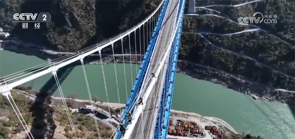央視網(wǎng)消息:今年,滇藏鐵路麗江至香格里拉段迎來開通后的首個春運,在重點控制性工程——虎跳峽金沙江鐵路大橋,一群檢修人員要在距離江面200多米的高空對大橋進行全面檢查,遠遠望去就像是在高空“走鋼索”,一起跟隨記者的鏡頭去看看。
