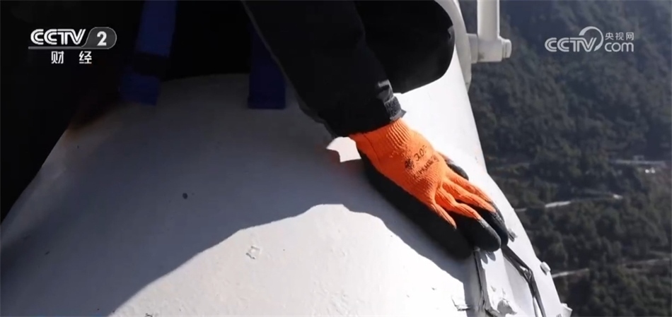 106個索夾、2000多顆螺栓,楊應(yīng)文帶著工友一處一處仔細檢查,在檢查梯上每移動兩米就要重新扣一次安全繩。