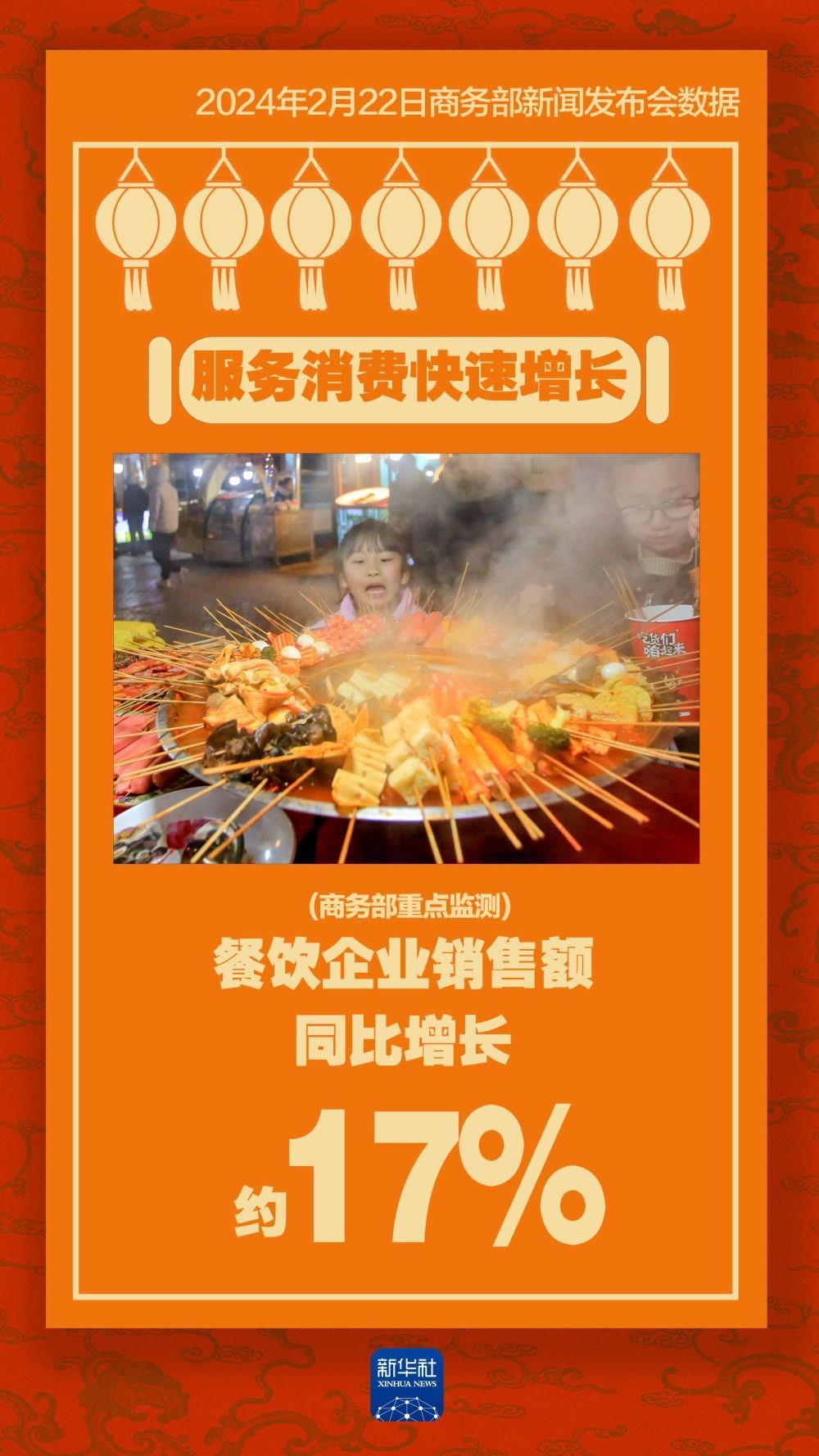 2月22日,商務(wù)部召開例行新聞發(fā)布會。商務(wù)部新聞發(fā)言人何亞東說,今年春節(jié)消費市場年味濃、活力足、人氣旺,銷售較快增長,實現(xiàn)良好開局。在新春消費旺季和各項政策措施帶動下,預(yù)計一季度消費市場將呈現(xiàn)平穩(wěn)增長態(tài)勢。