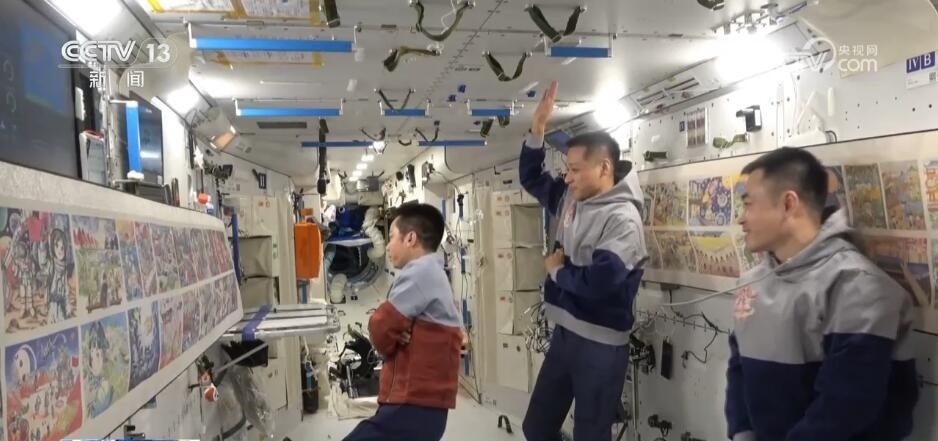 神舟十七號(hào)航天員乘組在鏡頭面前介紹“天宮畫(huà)展”時(shí)說(shuō):“全國(guó)各地的青少年朋友們,大家新年好!我們是神舟十七號(hào)航天員乘組,這里是咱們中國(guó)人自己的太空家園——中國(guó)空間站。分享一個(gè)好消息,大家期盼已久的天宮畫(huà)展又‘上新’了!”
