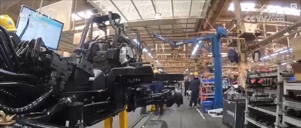 這是一個生產(chǎn)大拖拉機(jī)的農(nóng)機(jī)工廠,更是一個具備國際領(lǐng)先水平的現(xiàn)代數(shù)字化項(xiàng)目區(qū)。在傳統(tǒng)的產(chǎn)業(yè)工人身邊多了“數(shù)字工友”一起干活。