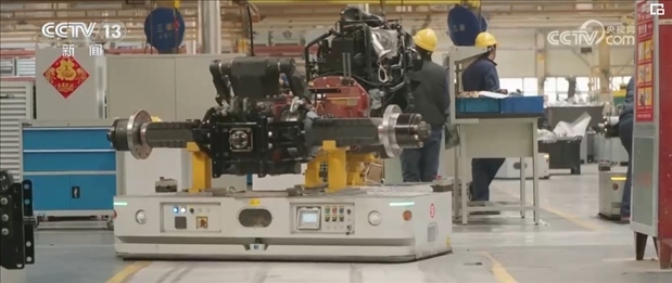 這是一部自動化的AGV轉(zhuǎn)運(yùn)小車,也叫做自動搬運(yùn)機(jī)器人,它搬運(yùn)的可不是小零件,而是拖拉機(jī)底盤。這個環(huán)節(jié)如果靠人工轉(zhuǎn)運(yùn),費(fèi)時又費(fèi)力,如今在它的幫助下,幾秒鐘就可以完成。