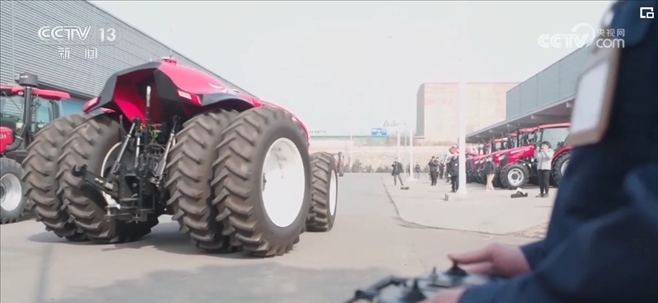 在這個數(shù)字項(xiàng)目區(qū),拖拉機(jī)生產(chǎn)的幾十道工序都在不斷優(yōu)化創(chuàng)新。這個沒有駕駛艙,更沒有駕駛員的拖拉機(jī)可以自由行走,指揮它行動的是一部手持操作面板,這是中國一拖新上線的無人駕駛拖拉機(jī)。