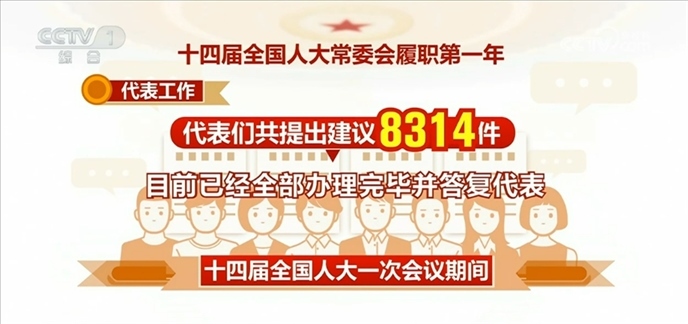代表工作方面:十四屆全國人大一次會議期間,代表們共提出建議8314件,目前已經(jīng)全部辦理完畢并答復代表。其中,涉及加快構(gòu)建新發(fā)展格局、著力推動高質(zhì)量發(fā)展的占比46.5%,涉及增進民生福祉、提高人民生活品質(zhì)的占比15.9%。