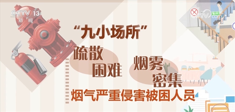 “九小場(chǎng)所”是指建筑面積在300平方米以下的小商場(chǎng)、額定就餐人數(shù)100人以下的小飯店、床位數(shù)50張以下的小旅館,以及小型的公共娛樂(lè)、休閑健身、醫(yī)療、教學(xué)、生產(chǎn)加工、易燃易爆危險(xiǎn)品銷售儲(chǔ)存等場(chǎng)所?!熬判?chǎng)所”一旦出現(xiàn)火災(zāi),容易形成大面積燃燒。通常,“九小場(chǎng)所”疏散困難、煙霧密集,煙氣嚴(yán)重侵害被困人員。同時(shí),水源缺乏、滅火救援難度大,極易造成人員傷亡。