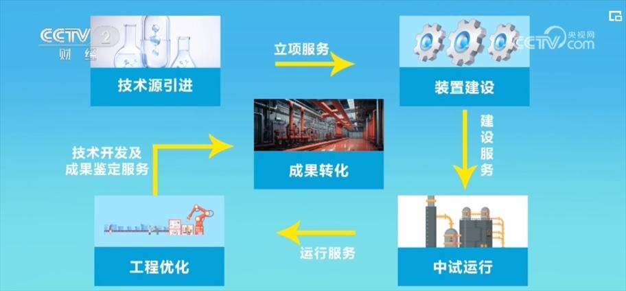 從技術源引進、裝置建設、中試運行、工程優(yōu)化到成果轉化等5個關鍵節(jié)點,為中試項目提供包含立項、建設、運行以及技術開發(fā)、成果鑒定等24項專業(yè)服務。