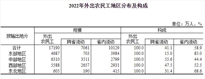 外出務(wù)工人員(農(nóng)民工)是我國流動人口的主體之一。國家統(tǒng)計(jì)局發(fā)布的《2022年農(nóng)民工監(jiān)測調(diào)查報告》顯示,2022年全國農(nóng)民工總量2.96億人,外出農(nóng)民工1.72億人,其中跨省流動7061萬人。