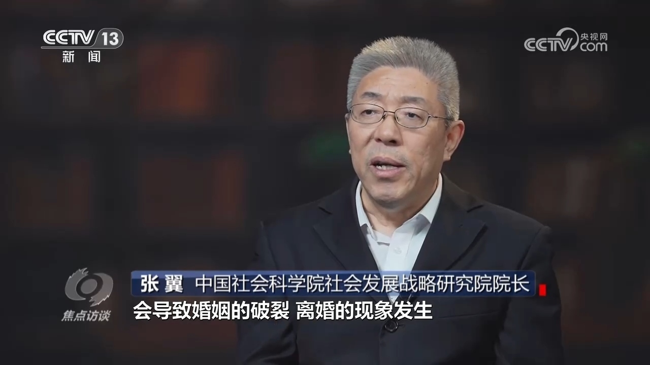 中國社科院社會(huì)發(fā)展戰(zhàn)略研究院院長(zhǎng)張翼:“增加夫妻雙方的矛盾以后,會(huì)導(dǎo)致婚姻破裂、離婚現(xiàn)象發(fā)生,導(dǎo)致離婚率居高不下;第二,往往導(dǎo)致兩個(gè)親家之間互不往來,原來存在的家庭網(wǎng)斷裂了。”?
