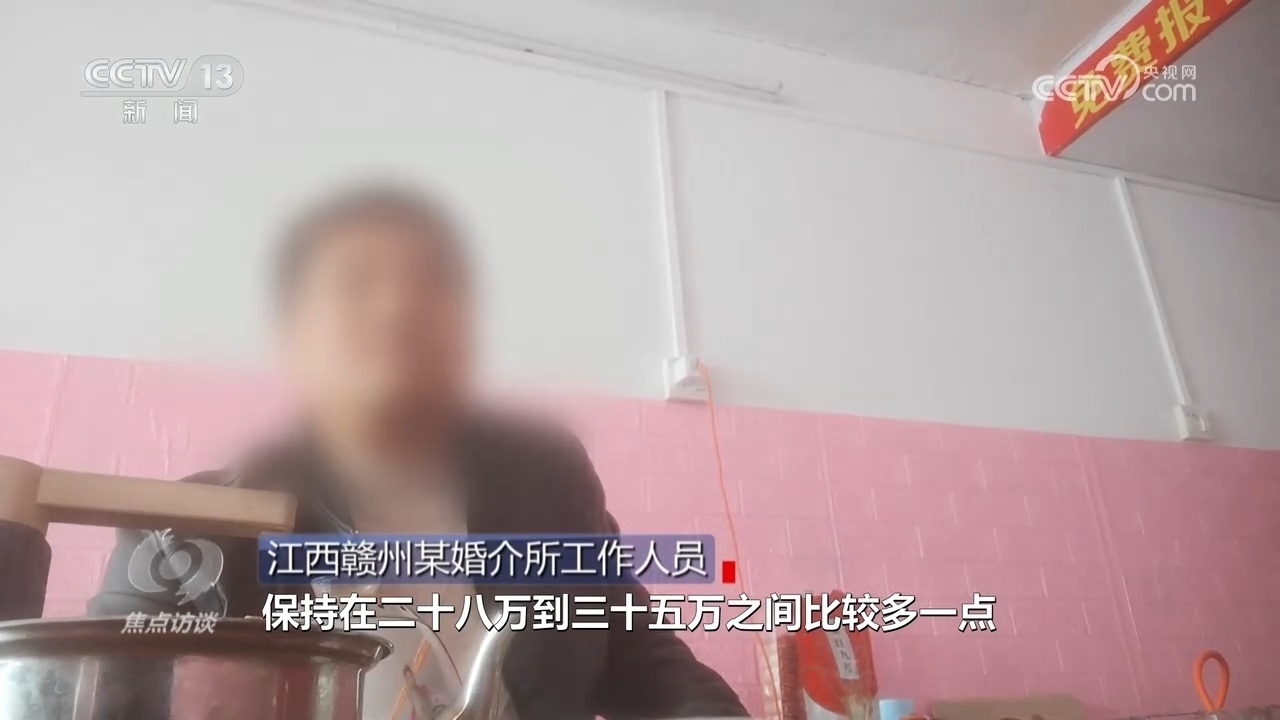 江西贛州某婚介所工作人員:“我們這邊彩禮有點(diǎn)偏貴,保持在二十八萬到三十五萬之間,最多的彩禮三十八萬。”