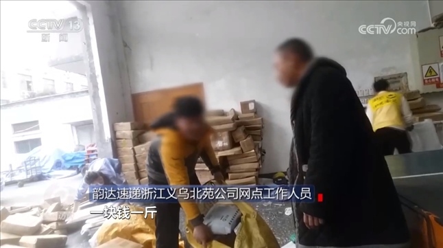 那么,涉事公司的快遞網(wǎng)點(diǎn)到底存不存在這種情況呢?記者進(jìn)行了實(shí)地探訪。在快遞網(wǎng)點(diǎn)的退件區(qū),現(xiàn)場(chǎng)有穿著“北苑韻達(dá)”字樣服裝的工作人員正在作業(yè)。工作人員告訴記者,退件用車?yán)?,一元錢一斤賣掉。