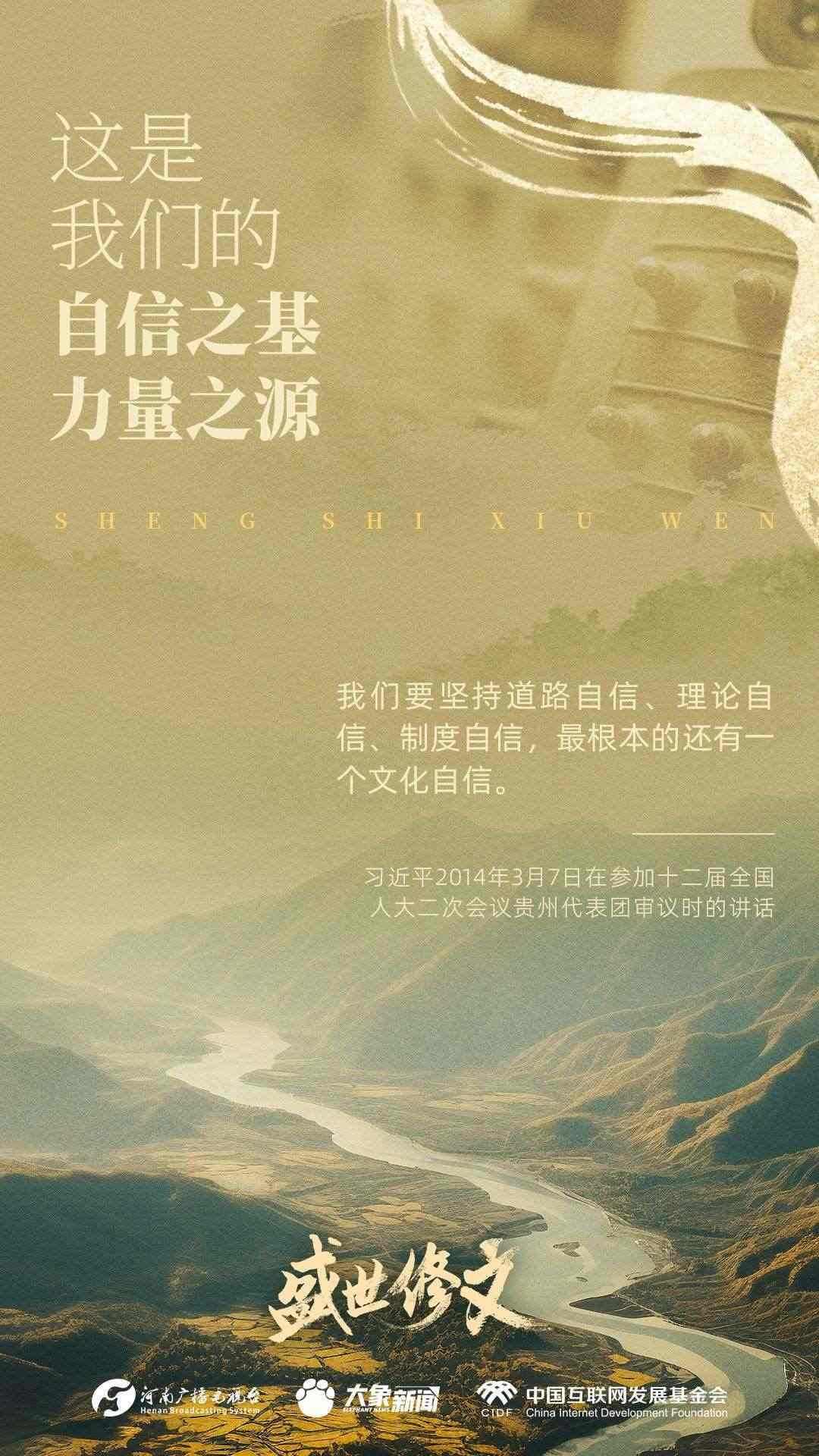 今天推出:習(xí)近平文化思想金句之《盛世修文|這是我們的自信之基、力量之源》。