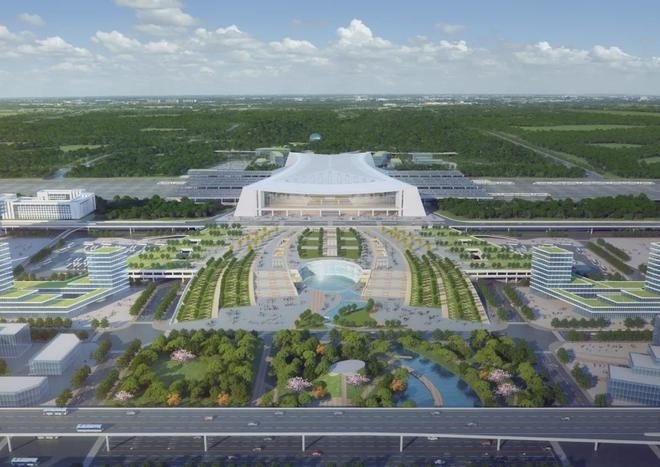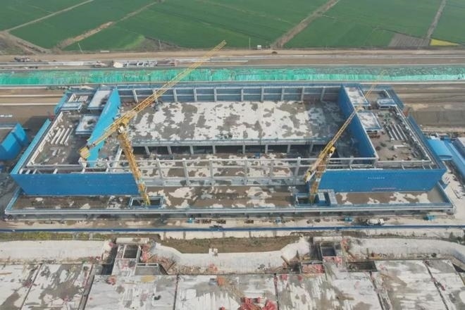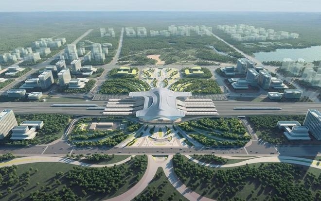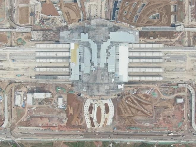 車站采用鋼結(jié)構(gòu)加鋁鎂錳板金屬屋面,整體空間造型提煉和吸取了明代傳統(tǒng)建筑造型特點,結(jié)合傳統(tǒng)與現(xiàn)代的設(shè)計手法,打造具有“風水寶地,祥瑞所鐘”設(shè)計理念的地域性地標建筑。目前,站房主體結(jié)構(gòu)已施工完畢,正在進行屋面鋼桁架施工。