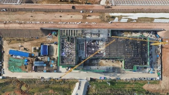 站房以“層波疊浪、水韻漢川”為設(shè)計理念,緊扣交通建筑簡明大氣的風格特征,通過抽象的形式語言,傳達“水”文化精髓。目前站房主體結(jié)構(gòu)已完工,正組織屋面鋼網(wǎng)架施工。