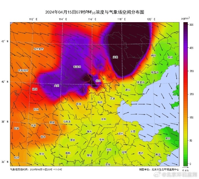 受上游來自蒙古國外來沙塵天氣影響,本市今早開始PM10濃度出現(xiàn)明顯抬升,目前西北部地區(qū)部分點位濃度已經(jīng)達到400微克/立方米以上,屬嚴重污染程度。