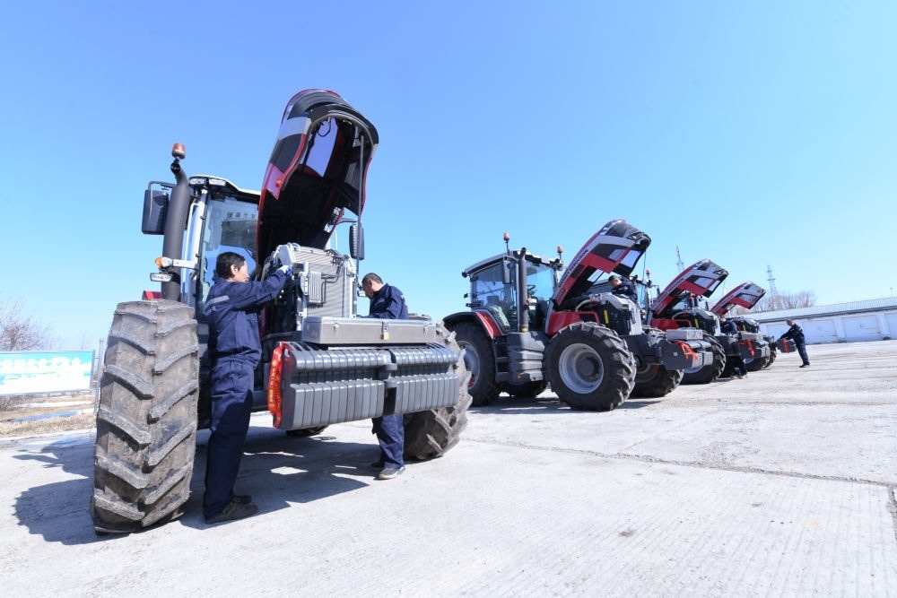 2024年3月22日,在北大荒集團(tuán)建設(shè)農(nóng)場(chǎng)有限公司,農(nóng)機(jī)手對(duì)新引進(jìn)的拖拉機(jī)進(jìn)行調(diào)試。新華社記者 王松 攝
