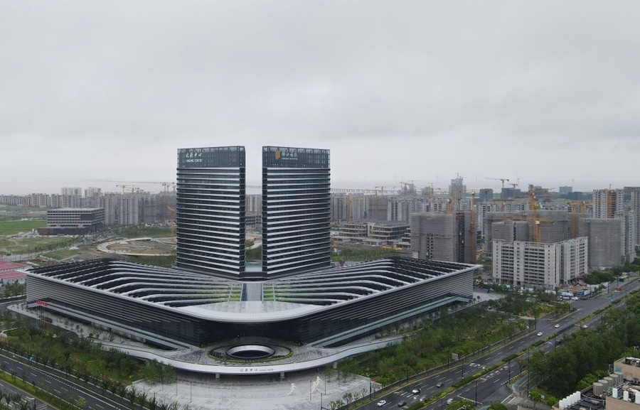 這是中國(上海)自由貿(mào)易試驗(yàn)區(qū)臨港新片區(qū)滴水湖(無人機(jī)全景照片,2023年9月6日攝)。